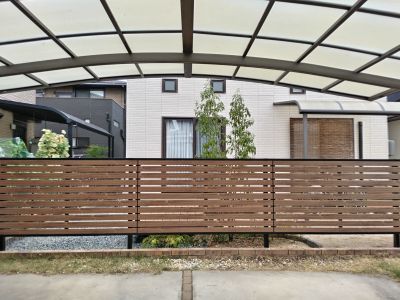昨今の猛暑に耐え切れず枯れてしまった、プリペットの生け垣を撤去し目隠しフェンスに変えたい、とのご要望!