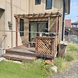 既存のウッドデッキとパーゴラを丁寧に撤去。