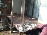 寒い日が続きますね〜お体には充分に気をつけて下さいませ。エクステリア&ガーデンプランナーの久保です!来週月曜日は、また雨が降りそうですよ〜。今日は既存のお客様のテラス工事現場に来ています、お客様の手作りデッキが古くなり傷んできたので、メンテナンス不要の人工デッキとアルミテラスと取付して、快適に使える空間を作っています!