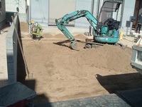こんにちは〜ベストホームのガーデンプランナーの久保です。今日から着工している岡山市南区の車庫工事中の現場です。ユンボで漉き取り作業中!側溝に残土が入らないようにラバーマットで養生は欠かせませんね!工事の進捗状況をアップしていきますね!