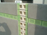 今日は、暖かい陽気で、現場で作業している職人さんも、一番仕事し易い時期になったきました。こちらのレンガ今良くケーキ屋さんでもよくみかける、空洞レンガ、非常に人気があります。このレンガを門袖のアクセントに使ってみました、今は緑の養生テープを貼っていて、わかりにくいですが、塗り壁のアクセントには、最高ですよ!