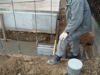 今日の日中の気温は9℃と4月中ごろにしては、考えられない寒さでしたね、なかなか防寒着が脱げませんね!そんな中でも文句ひとつ言わずに頑張ってくれている職人さんに、感謝です。玄関前にオシャレな壁造作開始、ブロックを一個ずつ根付けしていきます、縦筋も400ピッチで入れて、頑丈な門柱造作中!
