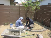 先日完成したお庭の花壇スペースの施工現場を紹介します、まずは花壇となる基礎を造っていきます、今回は円形を二つ組み合わせた感じで造っていこうと思います。
