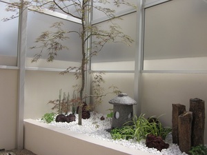 本日ご紹介するのは、お風呂場から眺める癒しの空間 坪庭です。 目隠しフェンスをして、近隣からの視線をカット。火山岩と六方石、シダレモミジを組み合わせて、モダンな坪庭が完成!夜になると和風のゆらぎ照明が、最高です!坪庭を眺めながら晩酌・・・いいですね!