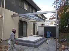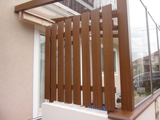 先日、完成したガーデンラウンジ ココマを紹介します。日当たりの良いリビング前にサイドスルー腰壁タイプを設置、目的は道路からの視線防ぐ事と建物との外観の調和です。