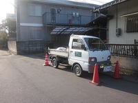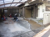 今日は、車庫拡張工事中の現場にきています。門扉とアコーディオンを撤去して、車庫スペースを広げています。アプローチになる床面のコンクリートを曲線にカットして、柔らかい感じにしています。