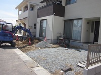 今日から倉敷市、K様邸のお庭工事着工です。今回は、白いタイルデッキのあるモダンなお庭を造作していきます。梅雨に入っているのですが、まとまった雨は降らず、今まで梅雨の中休み続き、いや中休みというより長休みですね。でも明日から本格的に雨が降りそうです。工期が心配だ・・・・。