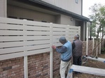 今回は、樹脂製の目隠しフェンスを施工!樹脂なので、メンテナンスはいりません。白いフェンスで、庭が明るくなりました。シマトネリコの緑とよく合っています。