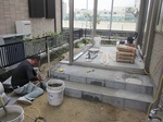 岡山市北区でガーデンルームの施工中の現場にきています。タイルの職人さんが、お洒落なタイルを一枚一枚丁寧貼っています。床面全体このタイルを貼ると高級感のあるガーデンルームができそうです。完成が待ちどうしいです。