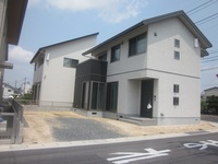 こちらがオープンスタイル外構、L字の人工デッキがポイントで、多目的スペースとして大活躍です。夜もライティングされて、お洒落ですよ!