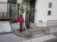 木目調の柱に取付した赤いポストがお洒落ですね!