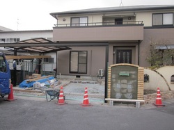 生垣を撤去して、目隠しを兼ねた、大型スライドドアを施工予定です。